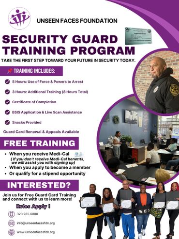 Providing support with resume building, skills evaluation which is directly relevant to their Employment and results in clients finding employment. In addition, we offer guard card training and GED tutoring and training.