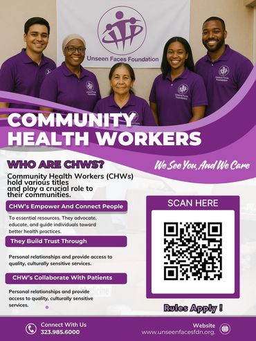 Unseen Faces Foundation regularly organizes health fairs, both at our facility and within the underserved communities of Los Angeles County. These events aim to bring vital healthcare services directly to those in need, fostering accessibility. Collaborating with healthcare professionals, we provide medical check-ups, screenings, vaccinations, and essential health resources. By extending our outreach beyond our facility, we strive to make a meaningful impact on the well-being of the broader community.